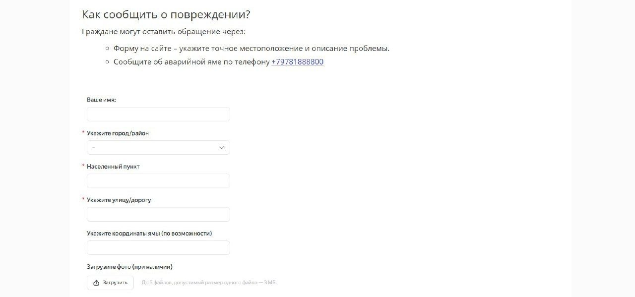 На нашем сайте заработал новый раздел «Яма на дороге» — теперь вы можете быстро сообщить о повреждении дорожного покрытия онлайн.