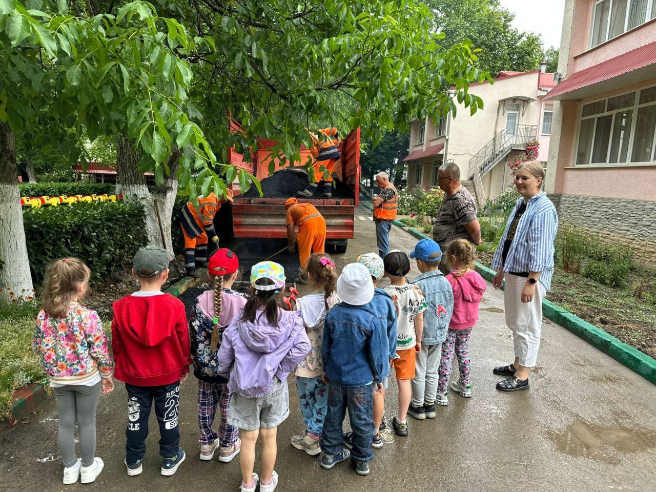 Сегодня дорожники "Крымавтодор" провели работы на территории детского сада «Колокольчик» в Симферополе.