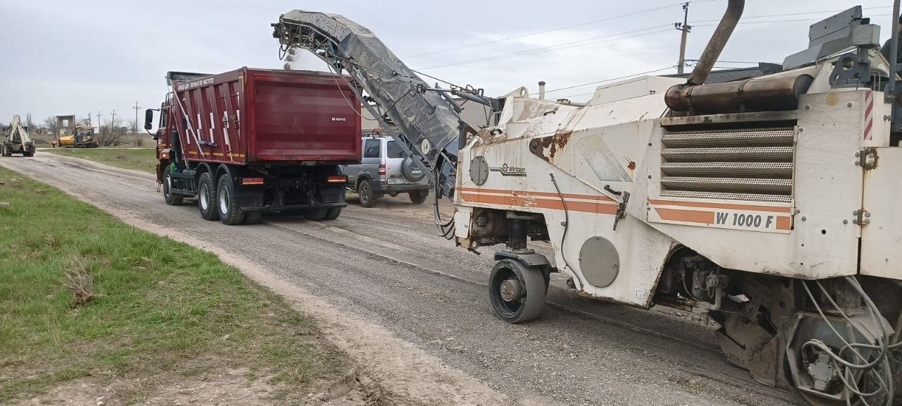 В настоящее время работы проходят в селе Мирное на улице Пригородной – устраняем повреждения и восстанавливаем покрытие.