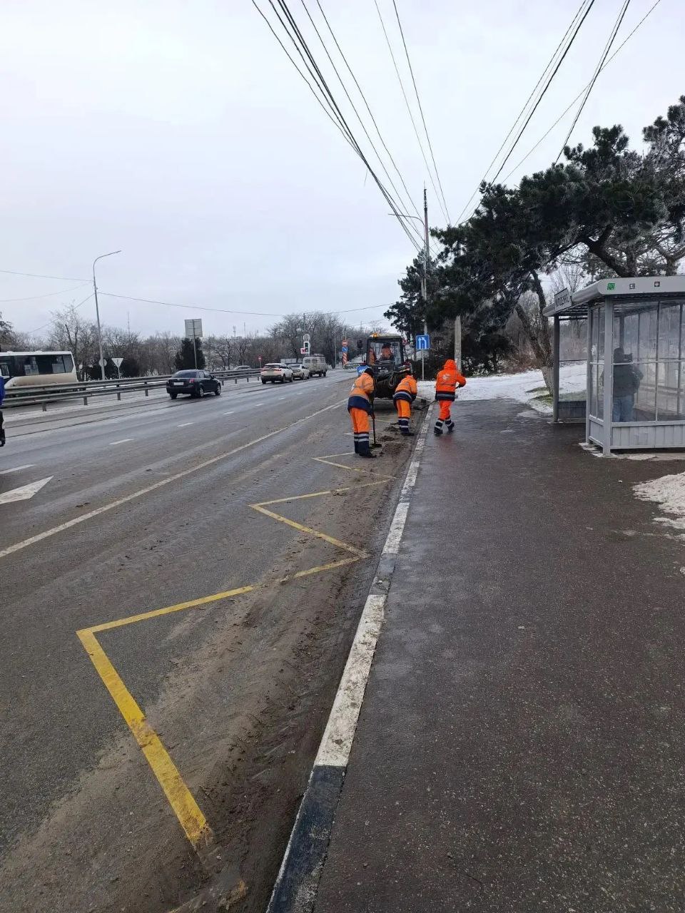 Очистка проводилась механизированным и ручным способом — с особым вниманием к остановочным пунктам, заездным карманам и участкам с повышенной пешеходной нагрузкой.